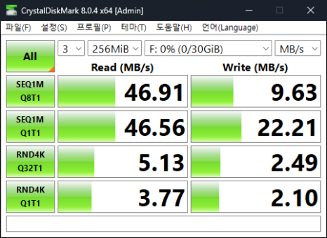 읽기 속도는 괜찮은데, 쓰기 속도는 좀 느리네요.
