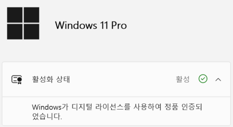 드라이버도 모두 자동으로 설치되구요. 윈도우11 pro 정품 라이선스도 인증되었습니다.