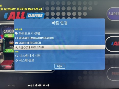 게임 에뮬에서 안드로이드로 부팅하려면 TF 메모리를 제거하거나 설정 메뉴에서 Reboot From NAND를 선택하면 됩니다.