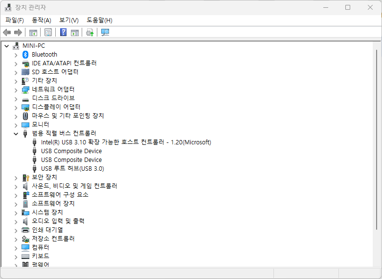장치 관리자에서 범용 직렬 버스 컨트롤러를 펼치면 USB 장치들이 나열되는데요.