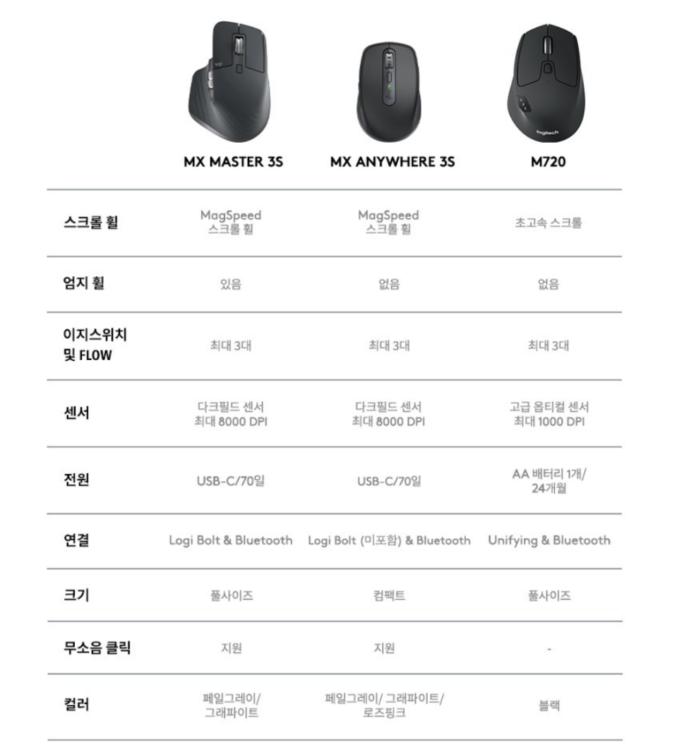 MX Master와 MX Anywhere 두 제품을 비교해 보았는데요.