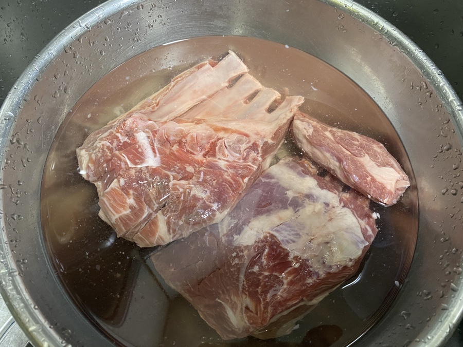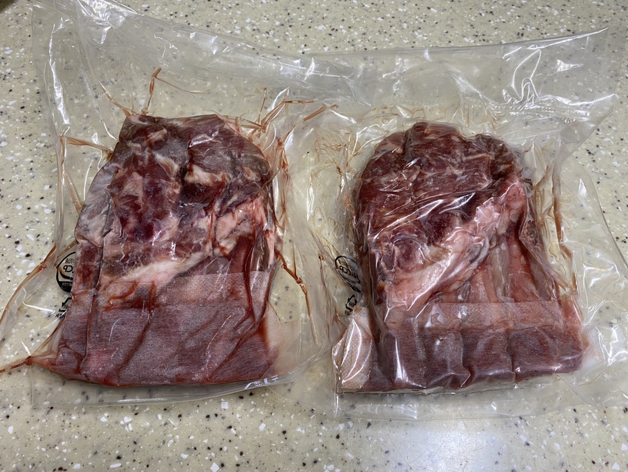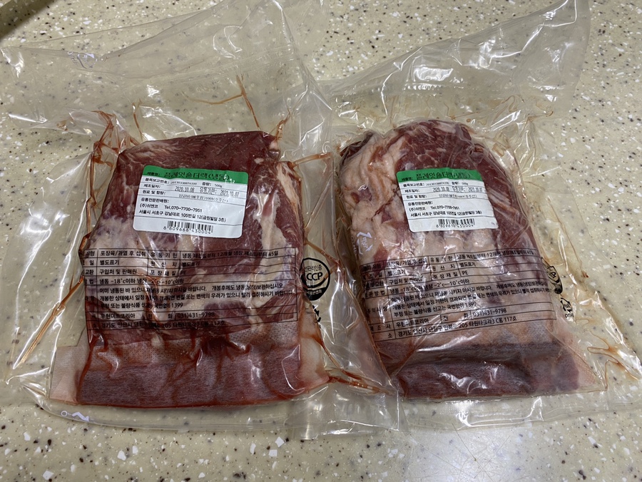 해동 후 핏물을 1시간 정도 핏물을 뺐는데, 여건이 안되면 키친타올로 빼도 된다고 합니다.