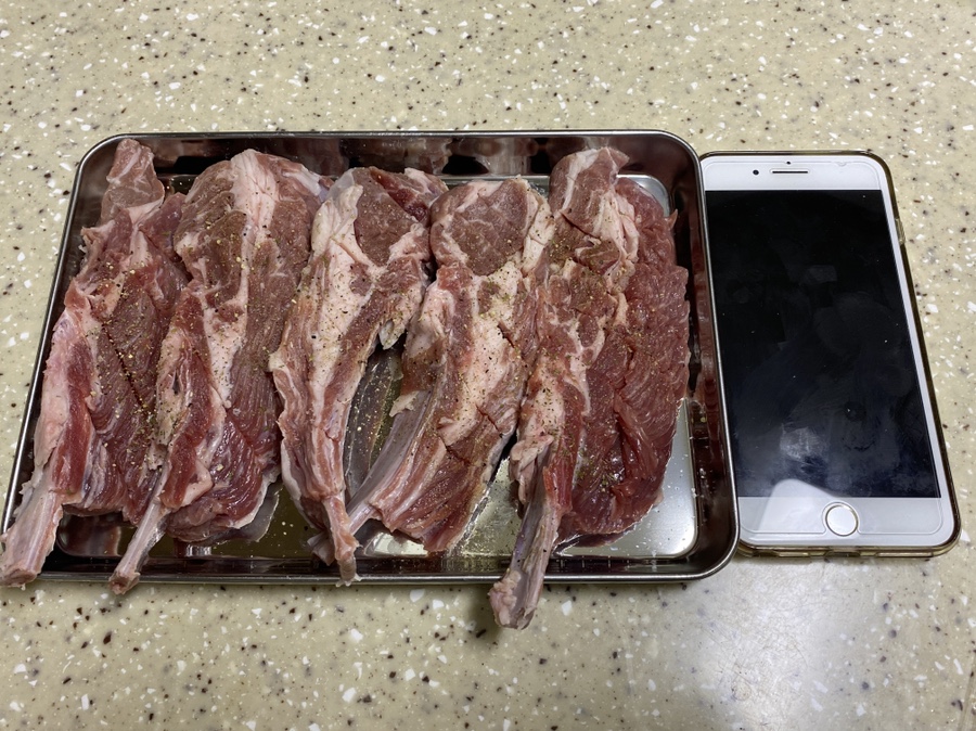 갈비 크기는 오른쪽 핸드폰과 비교해 보세요