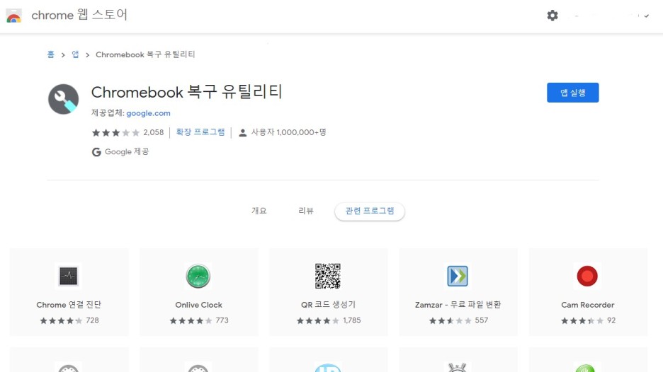 크롬북 복구 유틸리티를 설치합니다.