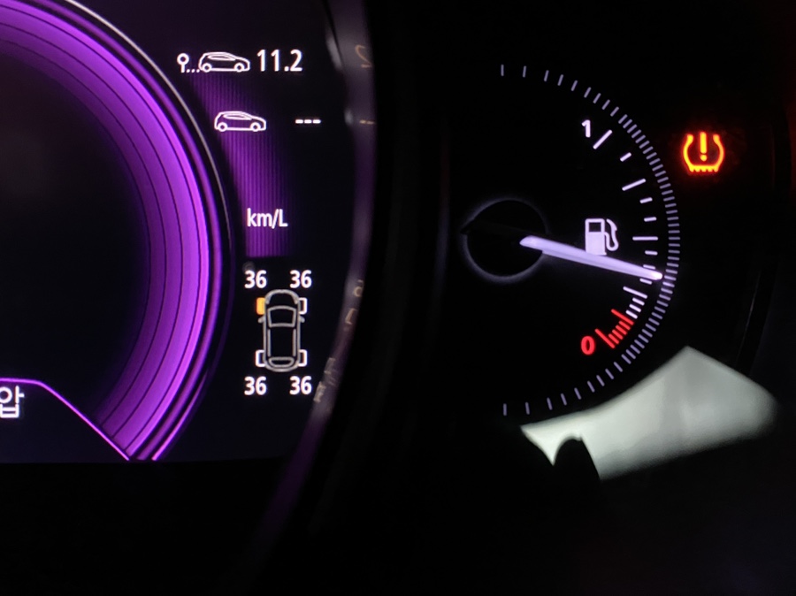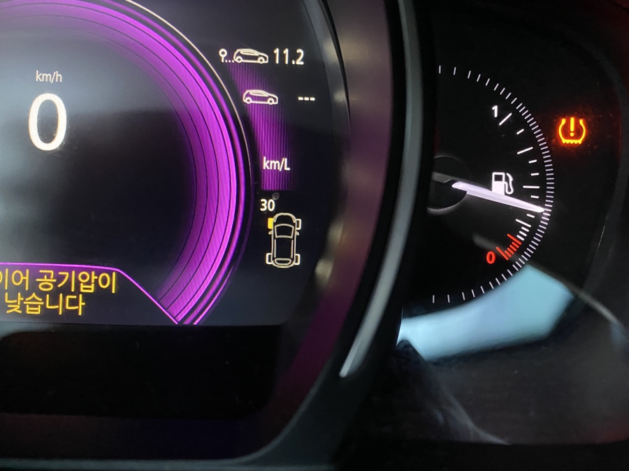 공기압을 보니 운전석 앞바퀴쪽이 30으로 낮아졌네요
