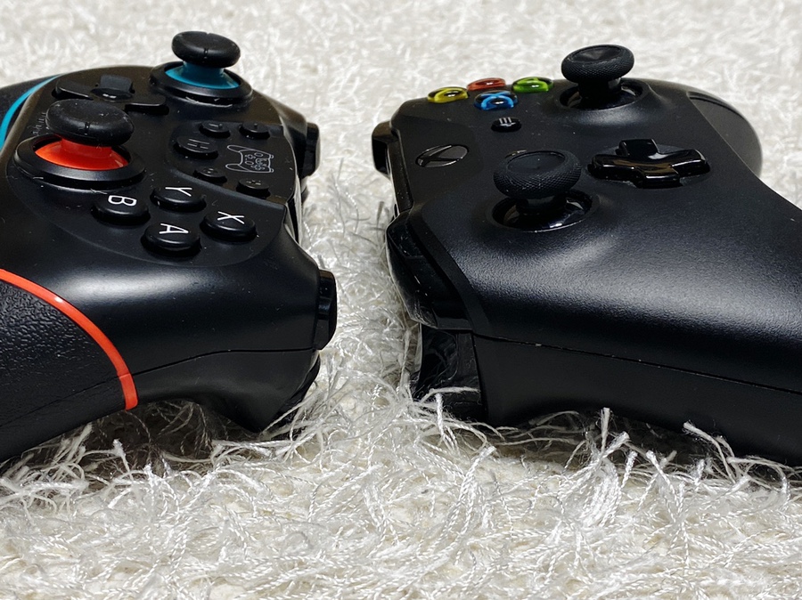 엑박패드와 비교하면 그립 각도가 기울어져 있습니다.