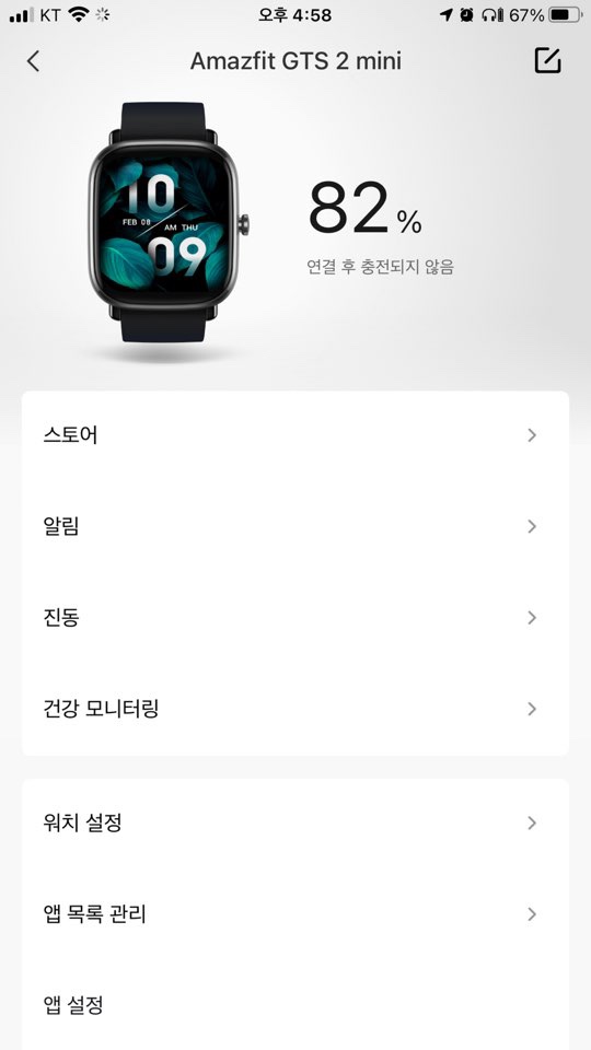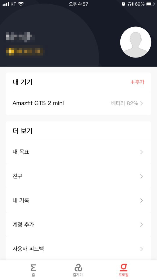 zepp 초기화면에서 하단 프로필 > Amazfit GTS 2 mini 선택