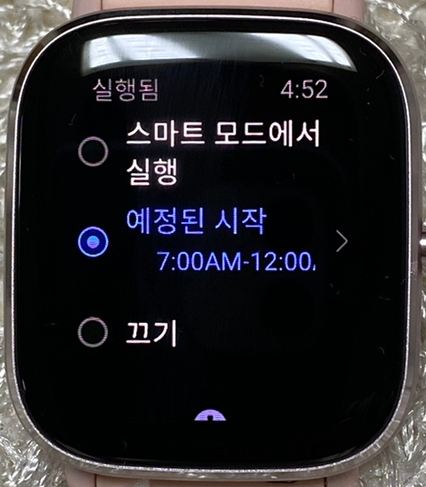 스마트 모드에서 실행은 손목에 착용했을 때만