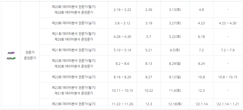 2021년 데이터분석 전문가 / 준전문가 시험 일정 및 시험정보입니다.
