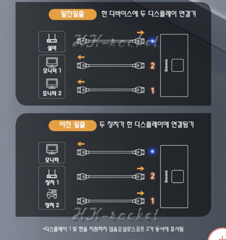 [US$11.50](▼8%)[베이스어스]베이스어스 4K고화질 HDMI 양방향 분배기 /세 대의 디바이스 연결/무료