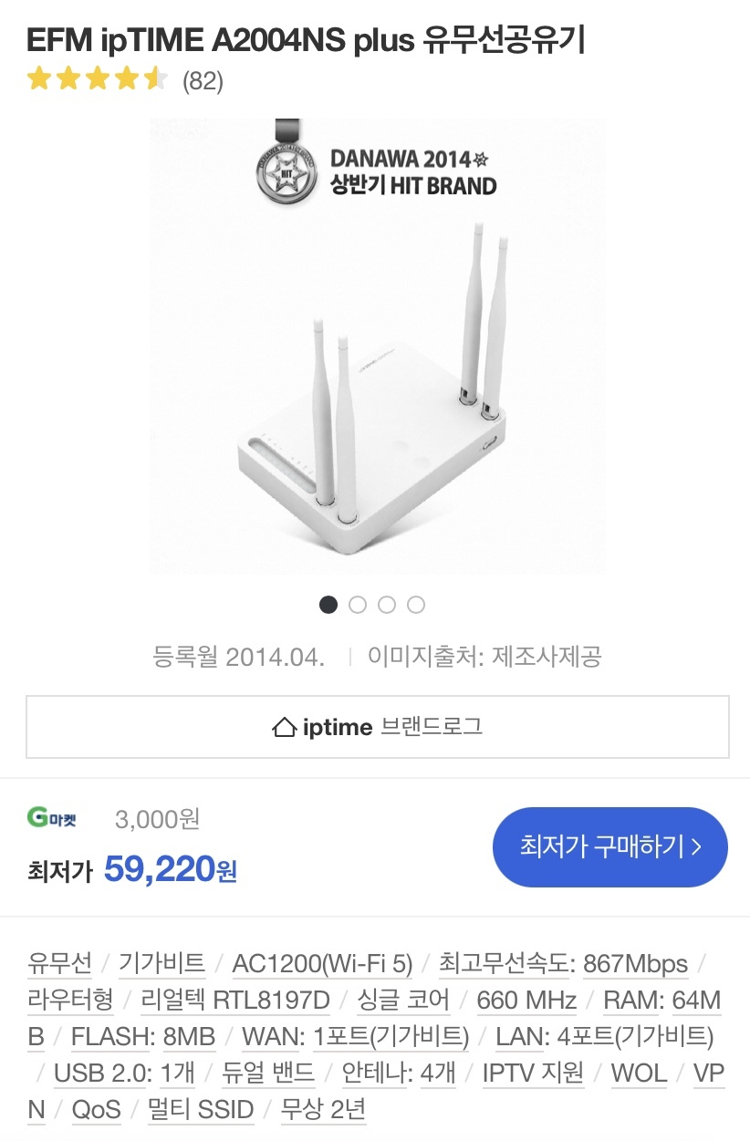 기존 사용하던 공유기는 a2004ns 공유기인데 스펙상 속도는 867Mbps 이지만 실제 속도는 5GHz 인 경우 200Mbps 정도나옵니다.