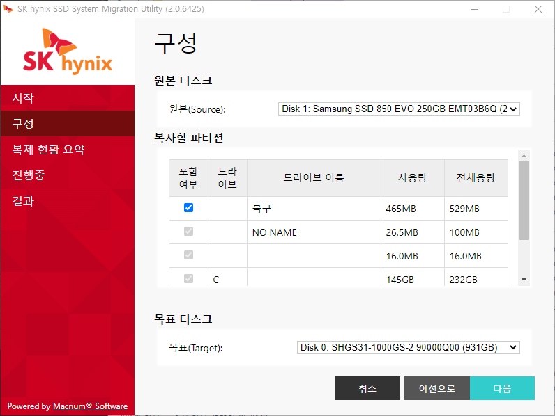 마이그레이션 : EVO 850 256GB -> SK 하이닉스 S31 1TB